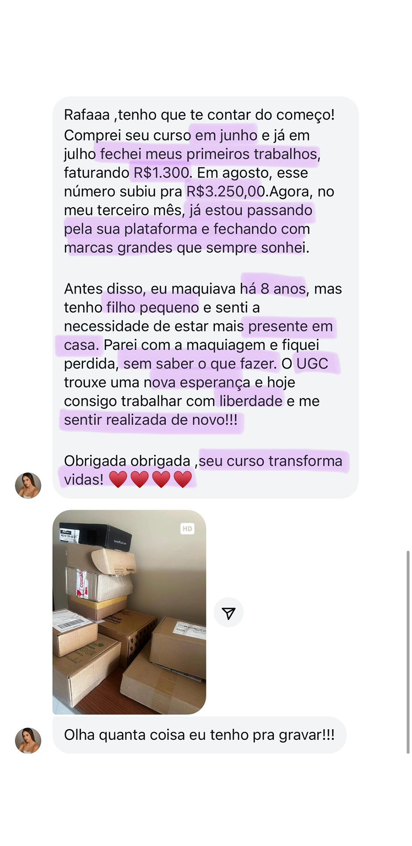 Formação Profissão do Futuro, Plataforma de Trabalhos (Seu Influencer), Rafinha.AI, Cinema na Mão, Do Zero ao Pro, Templates de UGC & Influencer, UGC Planner, Bio Magnética, O Roteirista, PortfolioLab, O Negociador, EfeitosLab e LUTs Profissionais.